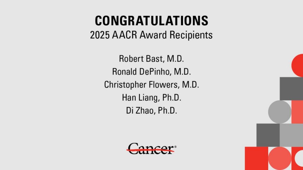 Five scientists from The University of Texas MD Anderson Cancer Center will be recognized with Scientific Achievement Awards and honors at the American Association for Cancer Research (AACR) Annual Meeting 2025. These awards highlight significant achievements in translational research and oncology leadership from both early career and internationally renowned scientists and clinicians.