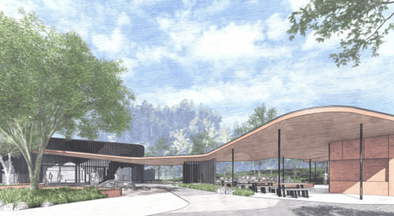 Above: A concept design of upgrades to the existing visitor information centre with proposed new sheltered outdoor spaces (image: Eplus Architecture)
