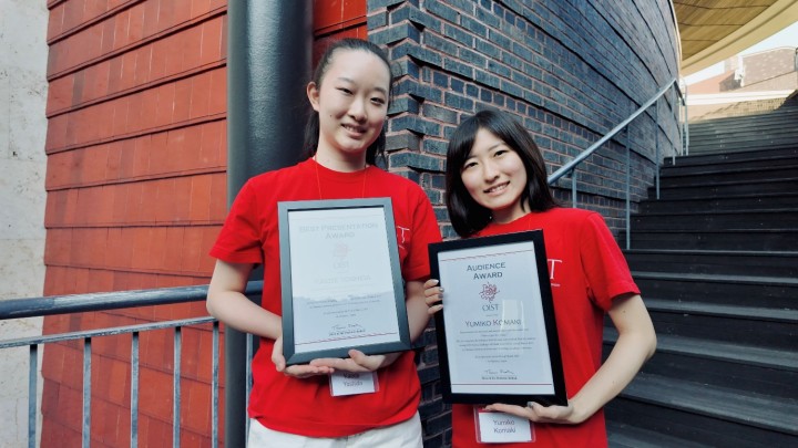 Kaede Yoshida, an undergraduate student in bioscience from Waseda University, received the judges' Best Presentation Award for her idea to study the gut microbiome of Okinawan populations with low cancer incidence. The Audience Award, based on votes from the presentation audience, went to Yumiko Komaki, a bioinformatics undergraduate student from Keio University, who presented her idea to output non-verbal ideas using artificial intelligence.