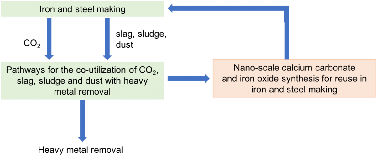"Our interest is in developing holistic solutions that harness all the metal-bearing residues and carbon dioxide generated in iron and steel making processes to produce nano-scale calcium carbonate and iron oxide and remove heavy metals," said Gadikota. "A key differentiator of this approach from existing pathways is the use of regenerable solvents for capturing carbon dioxide directly from flue gas to produce nano-scale carbonates at much lower temperatures in a process-intensified manner."