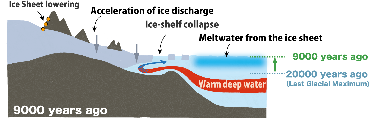 The present study aims to elucidate the mechanism of past ice-sheet collapse. The East Antarctic Ice Sheet, which contains more than half of the world's freshwater, is currently undergoing mass loss in certain coastal regions. It is imperative to comprehend the manner in which substantial ice sheets have responded to prior periods of climate warming, as this furnishes indispensable insights into their prospective stability in the context of the present global warming phenomenon. In order to investigate this phenomenon, the research team analysed marine sediment cores collected from Lützow-Holm Bay, which is located along the Sôya Coast in the vicinity of Japan's Syowa Station. These cores were analysed in conjunction with geomorphological and geological surveys conducted across Dronning Maud Land. These sediments were obtained through multiple Japanese Antarctic Research Expeditions (JARE) between 1980 and 2023, including recent sampling from the icebreaker Shirase. Utilising a range of analytical techniques, including sedimentological, micropaleontological, and geochemical analyses, the researchers were able to reconstruct past environmental changes in the bay and its environs. This reconstruction was facilitated by the use of measurements of beryllium isotope ratios (10Be/9Be). The results of the study indicated that approximately 9,000 years ago, the presence of warm Circumpolar Deep Water (CDW) intensified within the bay, resulting in the collapse of floating ice shelves. As the shelves disintegrated, they lost their buttressing effect, causing inland ice to flow more rapidly towards the ocean.