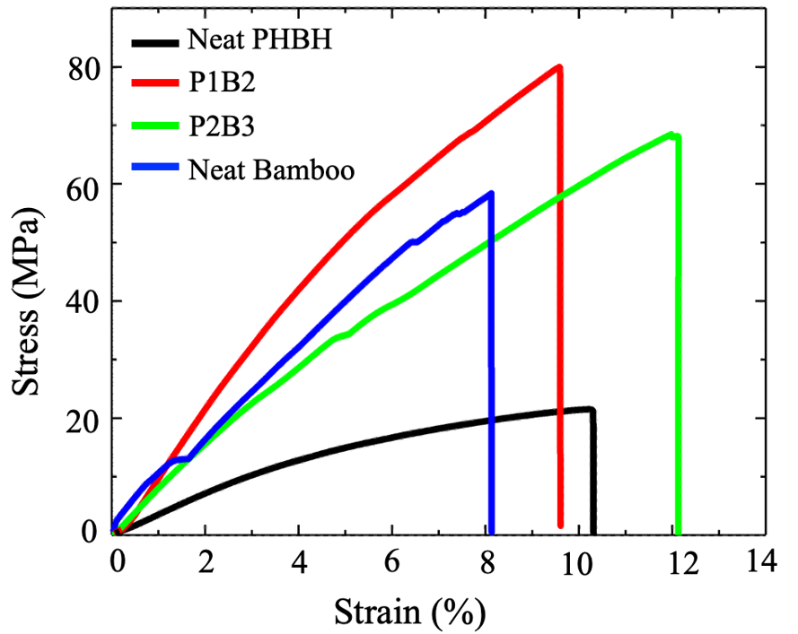 The researchers tested several designs. The best design used two bamboo layers and one PHBH layer. This structure showed higher tensile strength than either bamboo or PHBH alone. It reached a strength of 71.2 MPa.