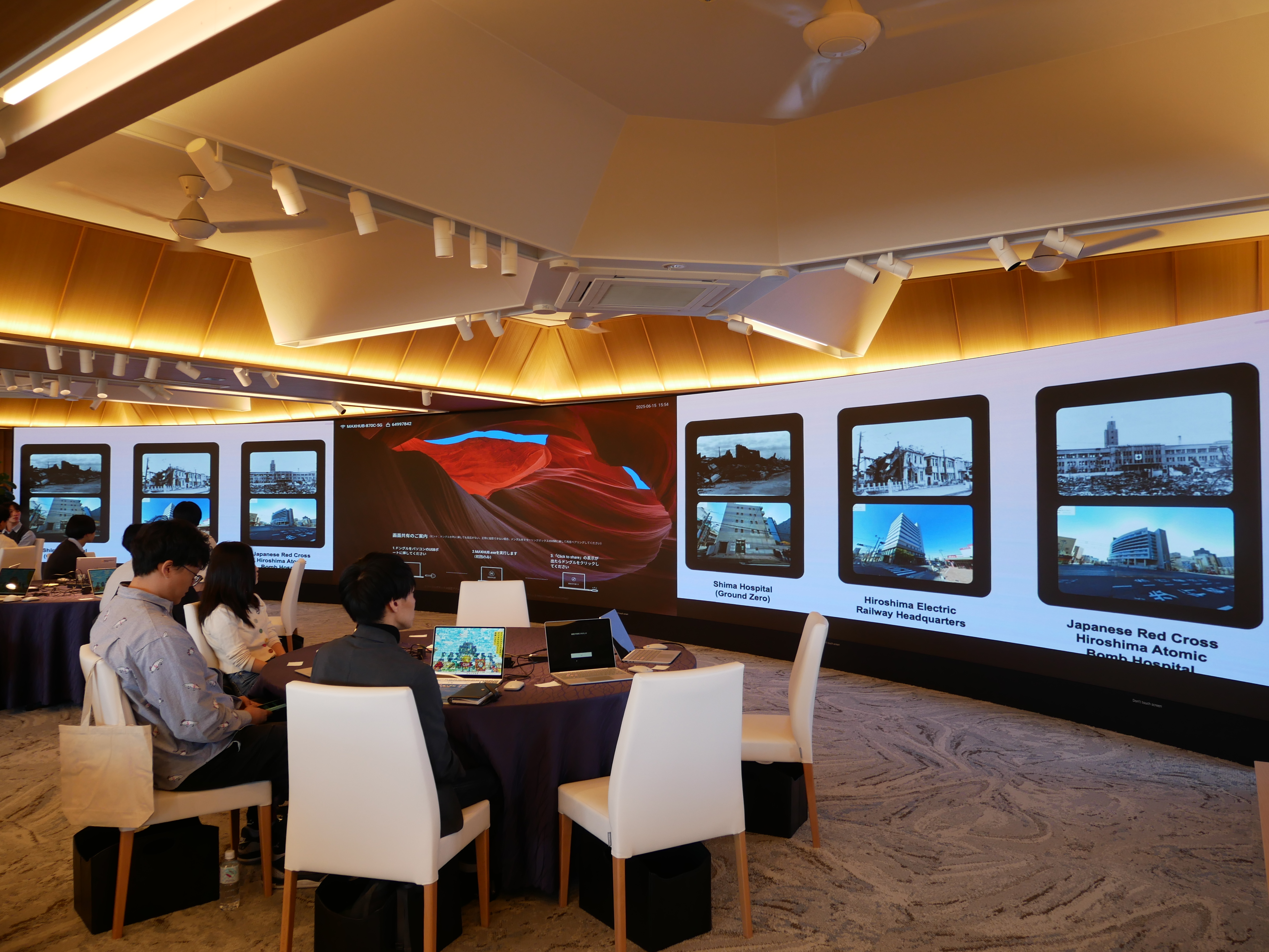 In the second half of the event, participants joined an interactive workshop facilitated by Mr. Takashi Doi, Representative Director of the Digital Monozukuri Council. Using Minecraft Education Edition, participants worked in groups to recreate the cityscape of Hiroshima before the atomic bombing. High school participants shared that this hands-on workshop was very different from the peace education they had received in primary, junior high, and high school, and that it offered a valuable opportunity to gain new perspectives and a renewed understanding of Hiroshima.