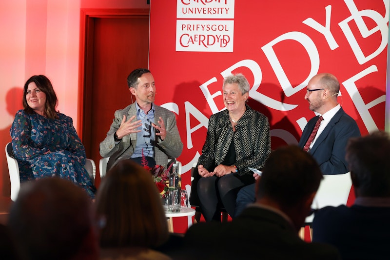 Finally, a panel chaired by Professor Roger Whitaker, Pro Vice-Chancellor for Research, Innovation and Enterprise, brought the speakers together to consider how Wales can strengthen its innovation ecosystem. The discussion explored priority areas for research commercialisation over the next decade and how these can align with the region's existing strengths in advanced manufacturing, life sciences, cyber and the creative economy. Panellists highlighted the importance of collaboration between universities, government, and industry in attracting international investment and creating opportunities for future generations.