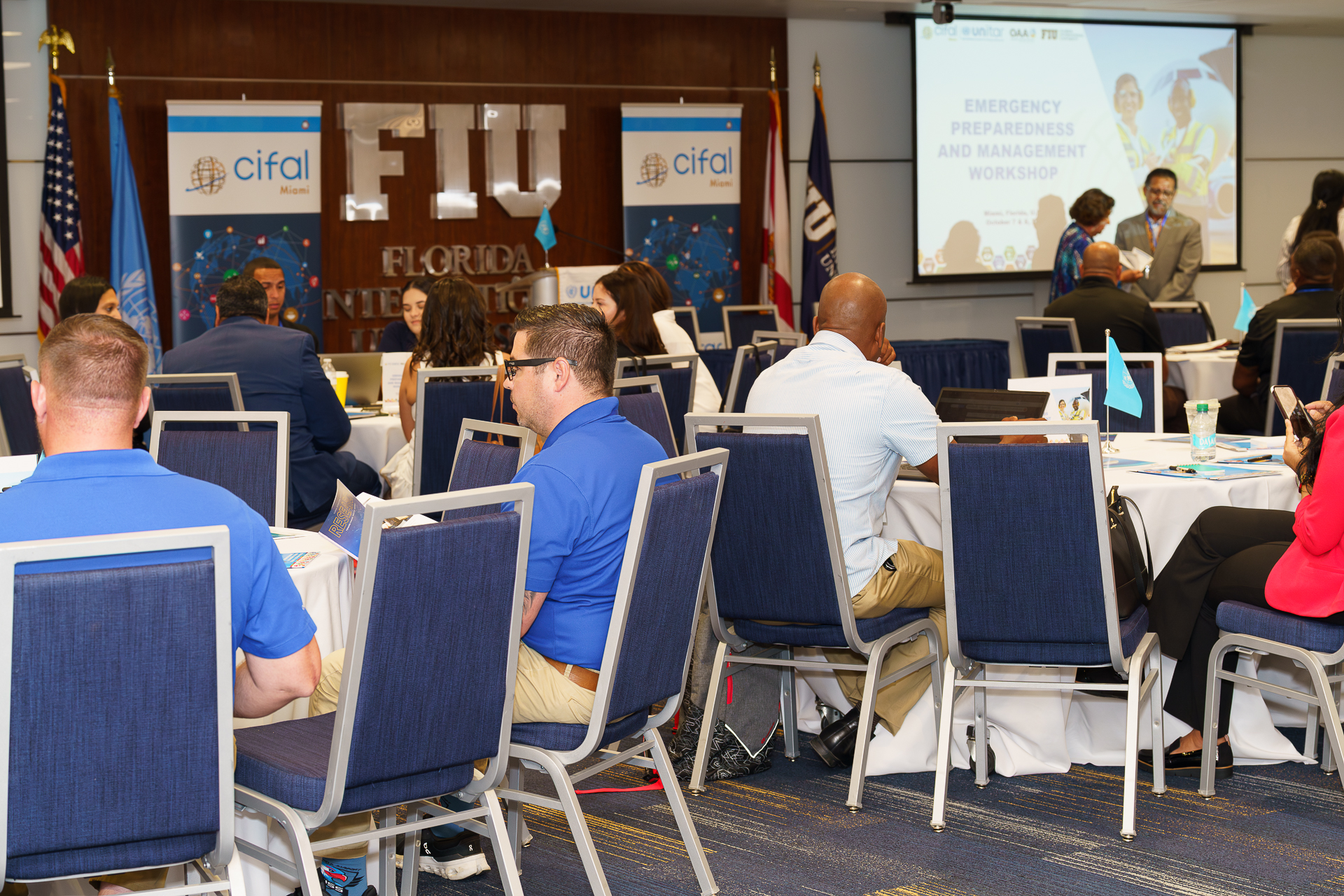 The International Training Centre for Authorities and Leaders (CIFAL) Miami in close collaboration with UNITAR successfully concluded its Emergency Preparedness and Management Workshop at Florida International University (FIU) on 7-8 October 2025. The two-day intensive programme brought together a group of 35 airport professionals, emergency planners, and government officials from across the Caribbean and Southeastern United States to strengthen crisis response capabilities and operational resilience.