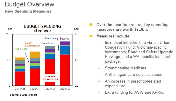 Tax cuts, higher infrastructure spending, increased asset write-offs for small businesses and a return to surplus are the main features of the 2019 Federal Budget, that has the government on track to eradicate net debt by the end of the next decade, according to Commonwealth Bank's Chief Economist Michael Blythe.