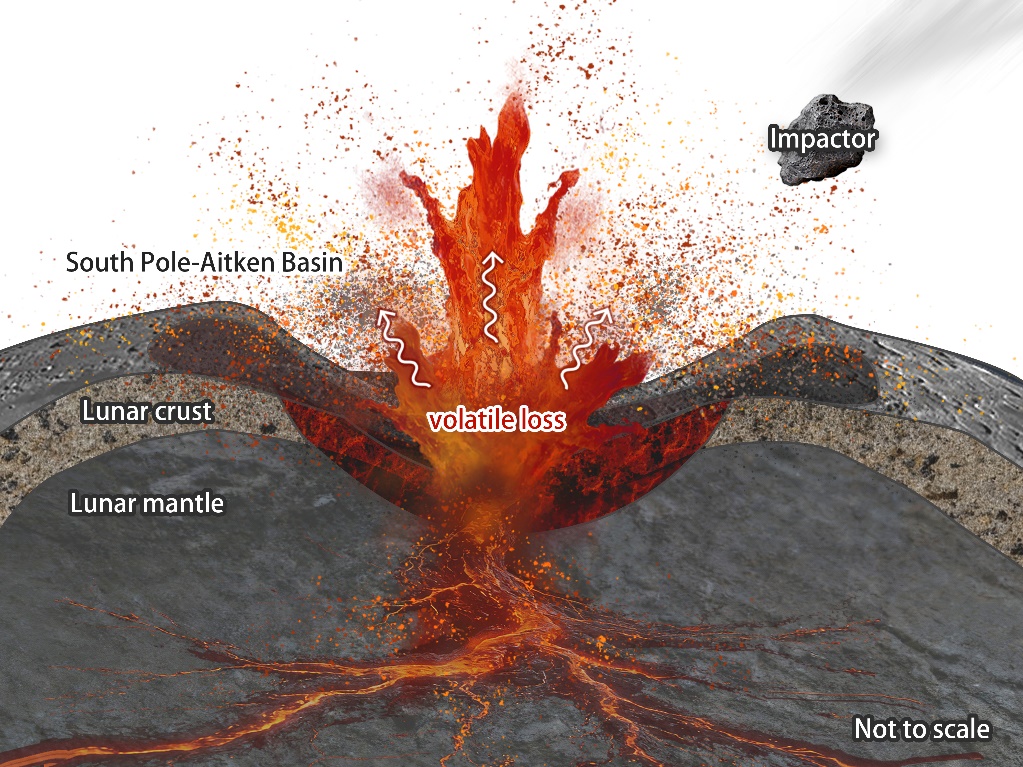Further research showed that extensive volatile loss (specifically K evaporation) was associated with the SPA-forming giant impact. Such volatile depletion may have suppressed magma generation and volcanic activity on the lunar far side, potentially accounting for the long-recognized asymmetry in volcanic activity between the Moon's near and far sides.