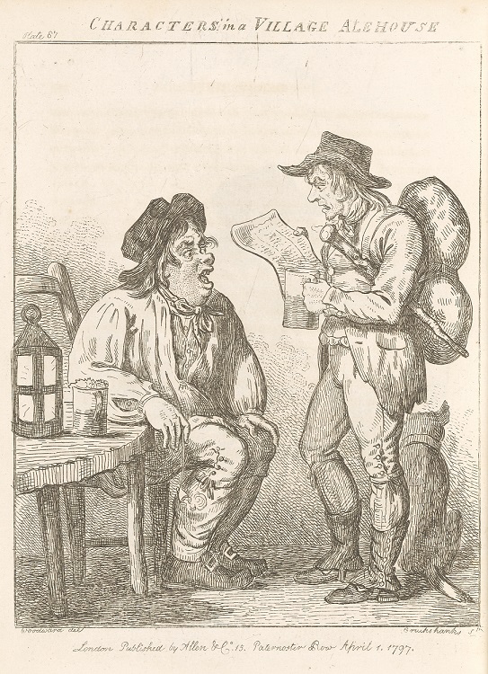 Image below shows a sketch of Characters in a Village Ale-House from GM Woodward, Eccentric Excursions (1817) © University of Nottingham Manuscripts and Special Collections