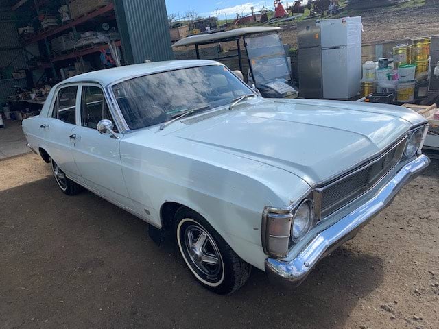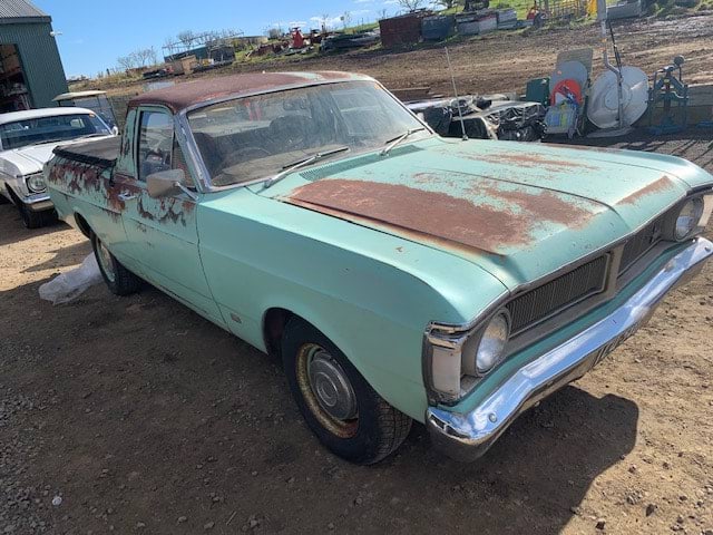 The cars are a 1969 white Ford XW utility, a 1969 white Ford XW four door sedan and a 1972 XT green Ford utility.