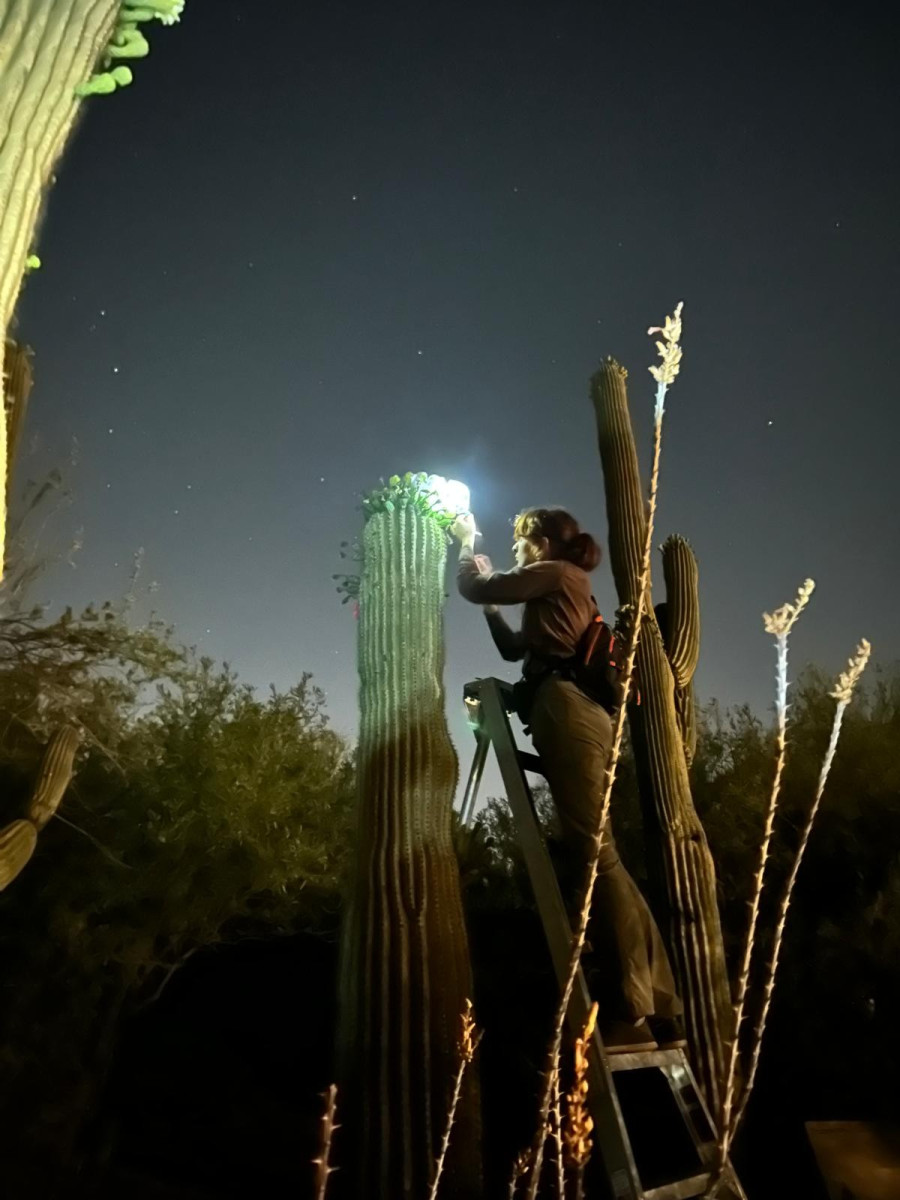 The saguaro cactus of southern Arizona and northern Mexico supports a diverse group of pollinators and is largely bird-pollinated, despite lacking plant traits that typically attract birds. Kirsten Keleher, a doctoral candidate in the field of neurobiology and behavior, will study interactions between white-winged doves, Gila woodpeckers and saguaro cacti to determine which floral traits are important in attracting different bird species. Her findings will illuminate the saguaro's reproductive ecology in a changing, urbanizing Sonoran Desert and inform conservation strategies for this keystone species and its complex pollination network.
