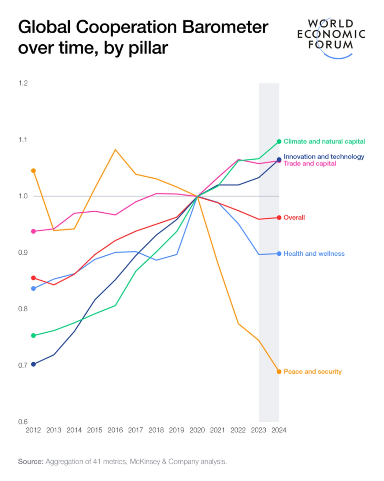 It found that although overall cooperation was largely unchanged from previous years, the composition of cooperation is moving from multilateralism to ' minilateralism ' - and is changing across five pillars: