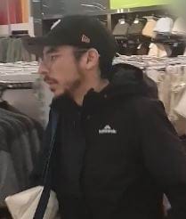 On both occasions he was wearing dark brown North Face tracksuit pants, white sneakers, a black Kathmandu jacket and wearing metal rimmed glasses.
