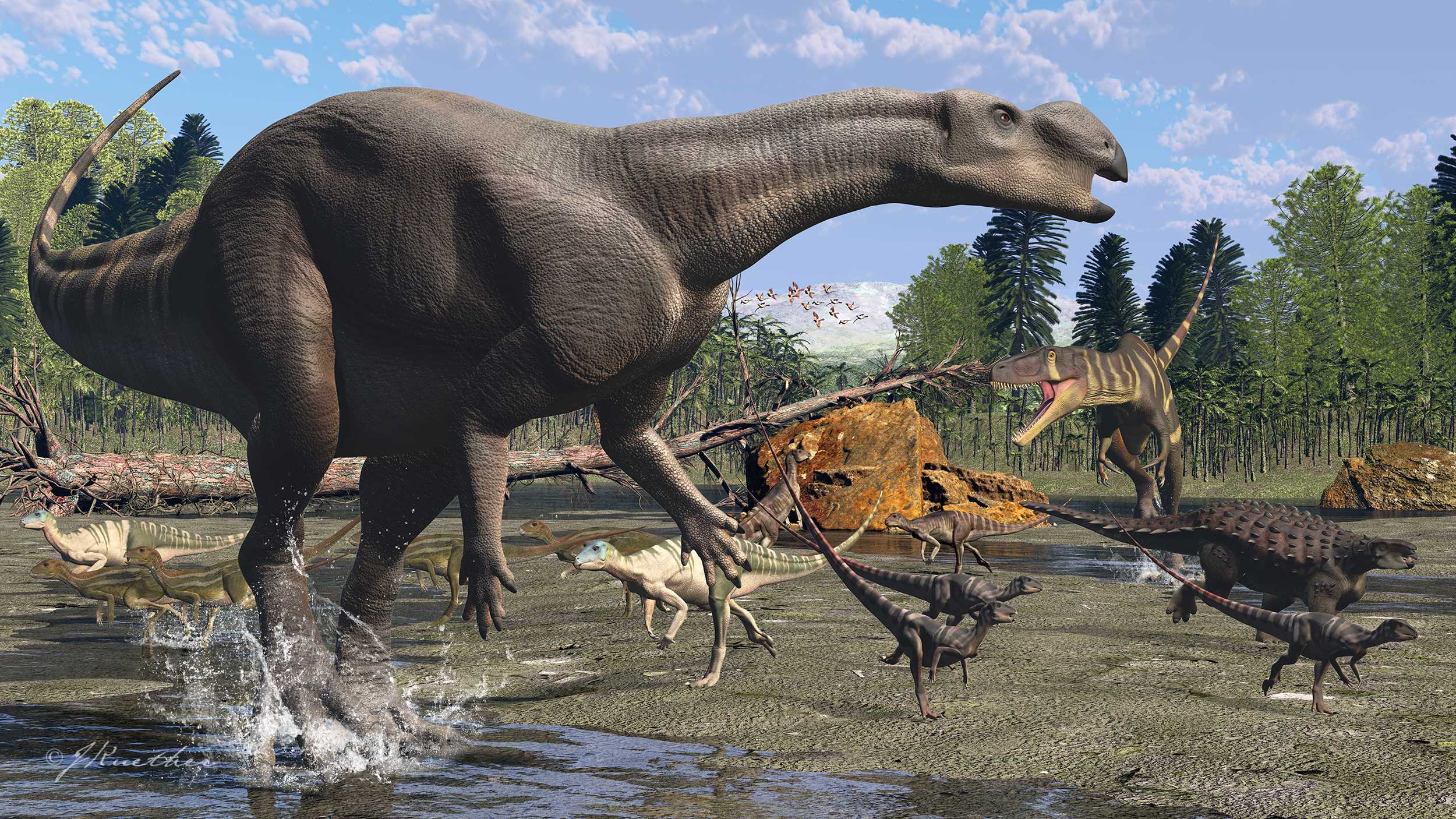 The article, 'Cranial anatomy, palaeoneurology, palaeobiology and stratigraphic age of the large-bodied ornithopod, Muttaburrasaurus langdoni Bartholomai and Molnar, 1981, from the mid-Cretaceous of Australia' (2026) by Matthew C Herne, Joseph J Bevitt, Luke Milan (UNE), Scott A Hocknull (Biodiversity and Geoscience, Queensland Museum), Alan M Tait (Monash University), Charlotte M Allen (QUT), Andrew C Rozefelds (Queensland Museum), Ralph E Molnar (University of California, Berkeley), Vera Weisbecker (Flinders) and Phil R Bell (UNE) has been published in PeerJ DOI: 10.7717/peerj.20794.