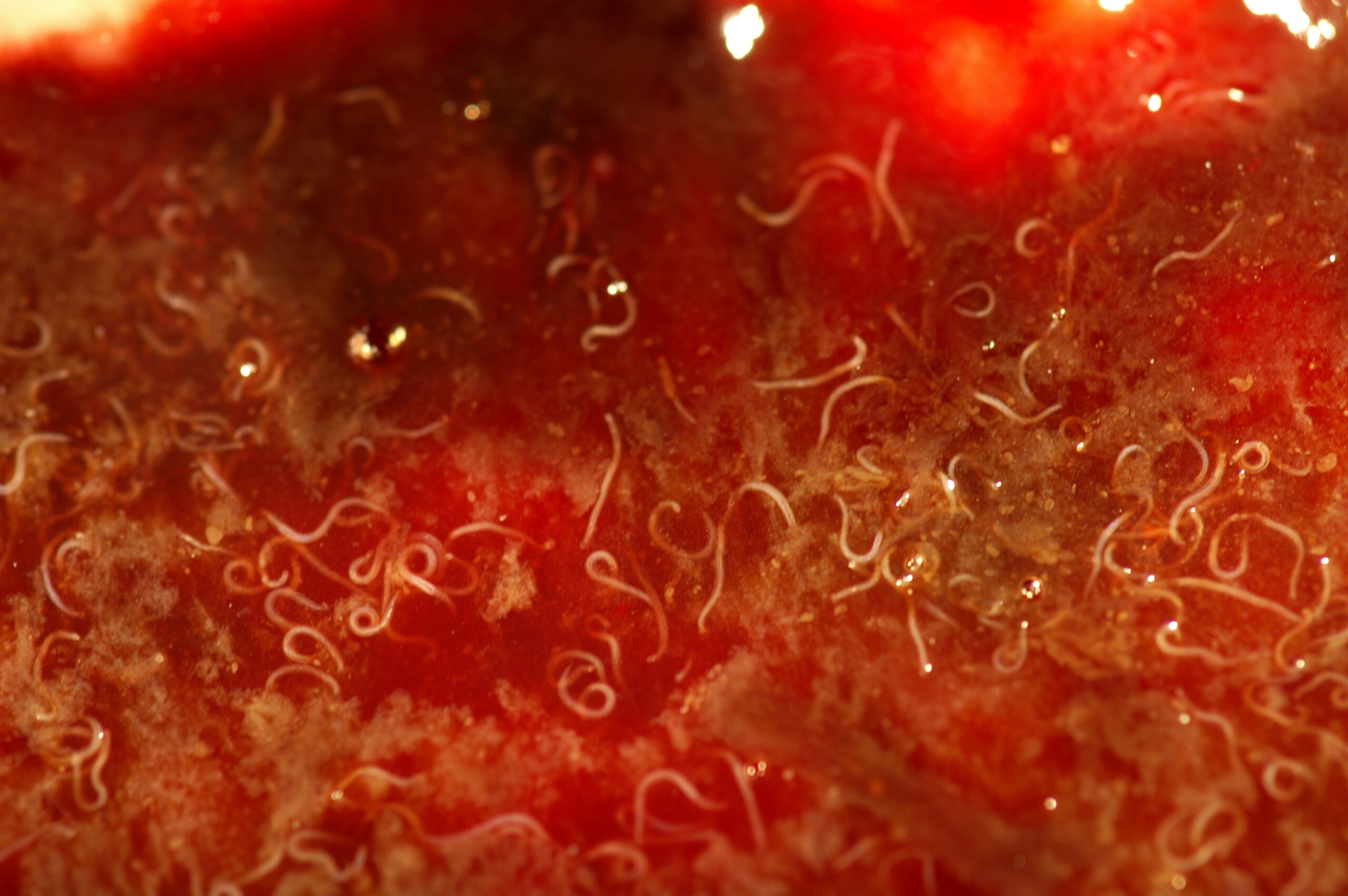 The infection doesn't manifest in the same way in people, but after the worms penetrate the skin, they cause a red, very itchy rash as they travel under the skin. As the number of drug-resistant worms grows, they'll also pose a risk to humans.