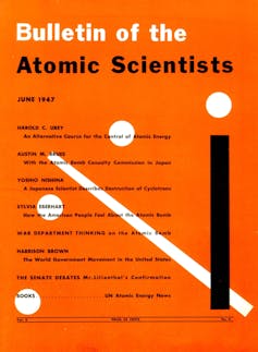 Two years on, the Bulletin, as it came to be known, published its first magazine. And on the cover: a clock, with the minute hand suspended eerily only seven minutes from midnight.