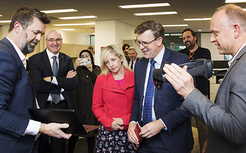 The Minister had the opportunity to see first-hand how the University's research and commercial enterprise is transforming the western Sydney region into a globally competitive tech and innovation hub that can help lead in the nation's post-pandemic recovery – creating new knowledge jobs and driving industry innovation, in partnership with government and local business.