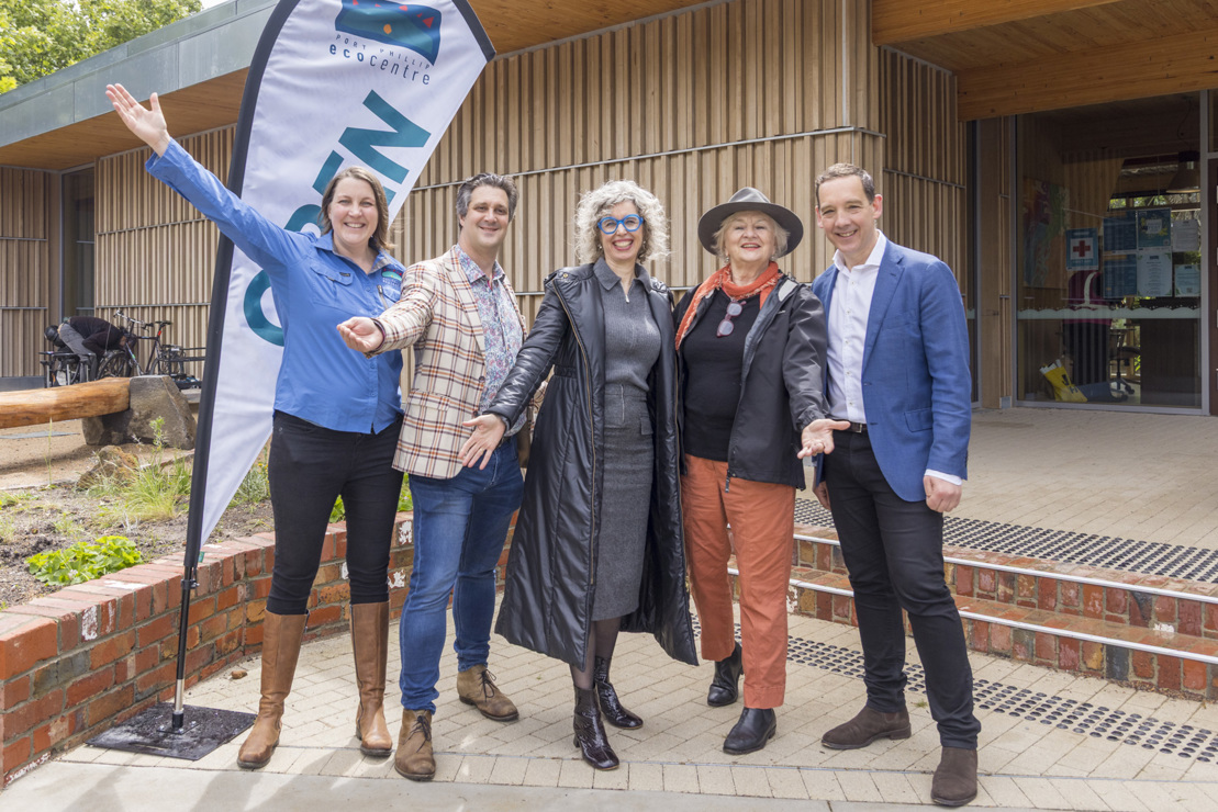 April Seymore (Executive Officer, EcoCentre), Mayor Alex Makin, Member for Albert Park Nina Taylor, Jan Cossar (President, EcoCentre) and Minister for Environment Steve Dimopoulos.