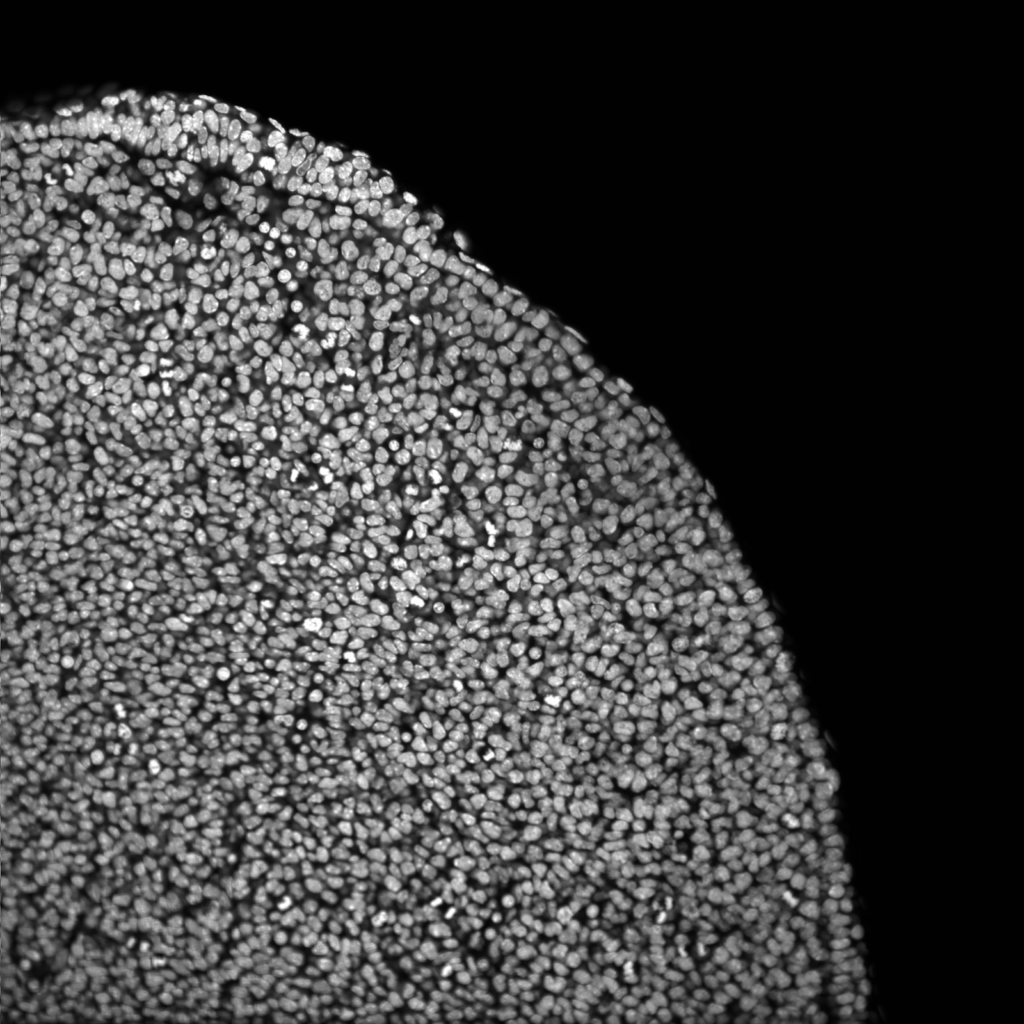 Scientists have also begun to explore the potential of expansion microscopy in imaging larger tissues and structures, going beyond unicellular organisms and cells grown in the lab. Laura Campamà, an intern in EMBL Barcelona's Mesoscopic Imaging Facility (MIF), spent a couple of months standardising the technique to work on mouse embryos to study cellular organisation during tissue growth. In this, she was guided by Montserrat Coll Lladó, Mesoscopic Imaging Scientist.
