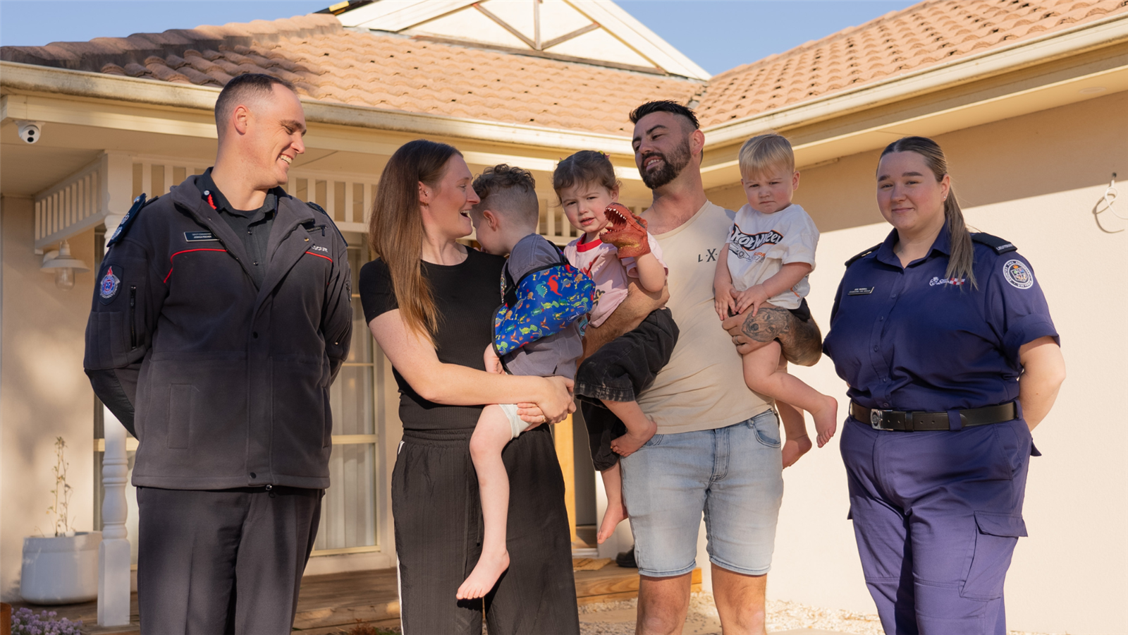 Fire Rescue Victoria Deputy Commissioner, Community Safety, Joshua Fischer, Ashlea and Michael Vamplew with Harlow and Cranbourne Fire Brigade CFA member Zoe Russell.