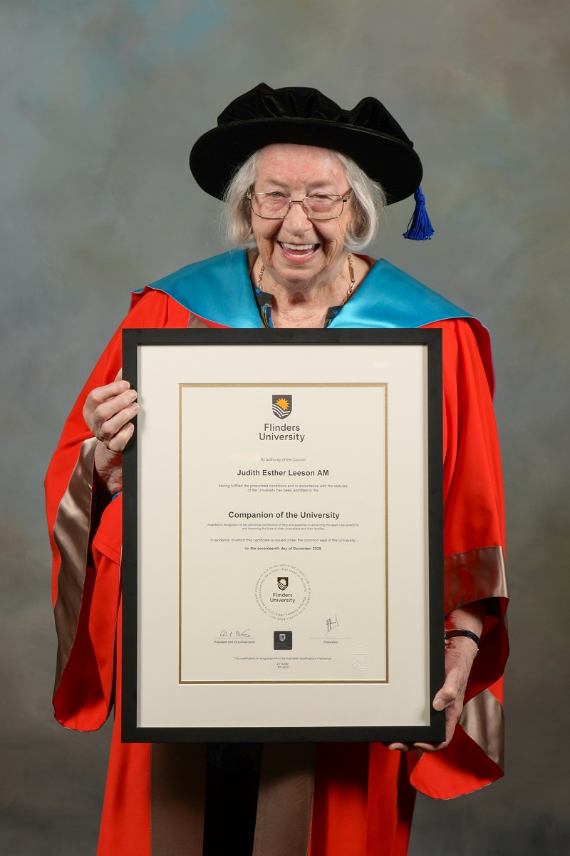 "As Australia's population continues to age and the focus on enhancing quality of life grows, Judith Leeson AM has been recognised for generously contributing her time and expertise to strengthening the aged care workforce and improving the lives of older Australians and their families. Her lifelong commitment exemplifies Flinders University's values." said Chancellor Hood.