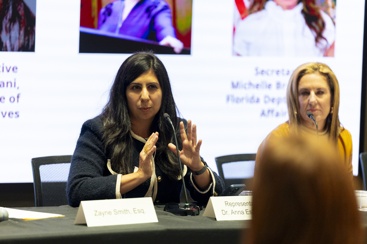 The second panel, "Supporting Family Caregivers Through Policy," was moderated by Zayne Smith, Esq. (AARP Florida) and included panelists Representative Anna Eskamani (Florida House of Representatives), Senator Kathleen Passidomo (Florida Senate) and Secretary Michelle Branham (Florida Department of Elder Affairs). The conversation covered how policymakers collaborate to create policies for caregivers and Florida's aging population and discussed future implications of an aging demographic in Florida.
