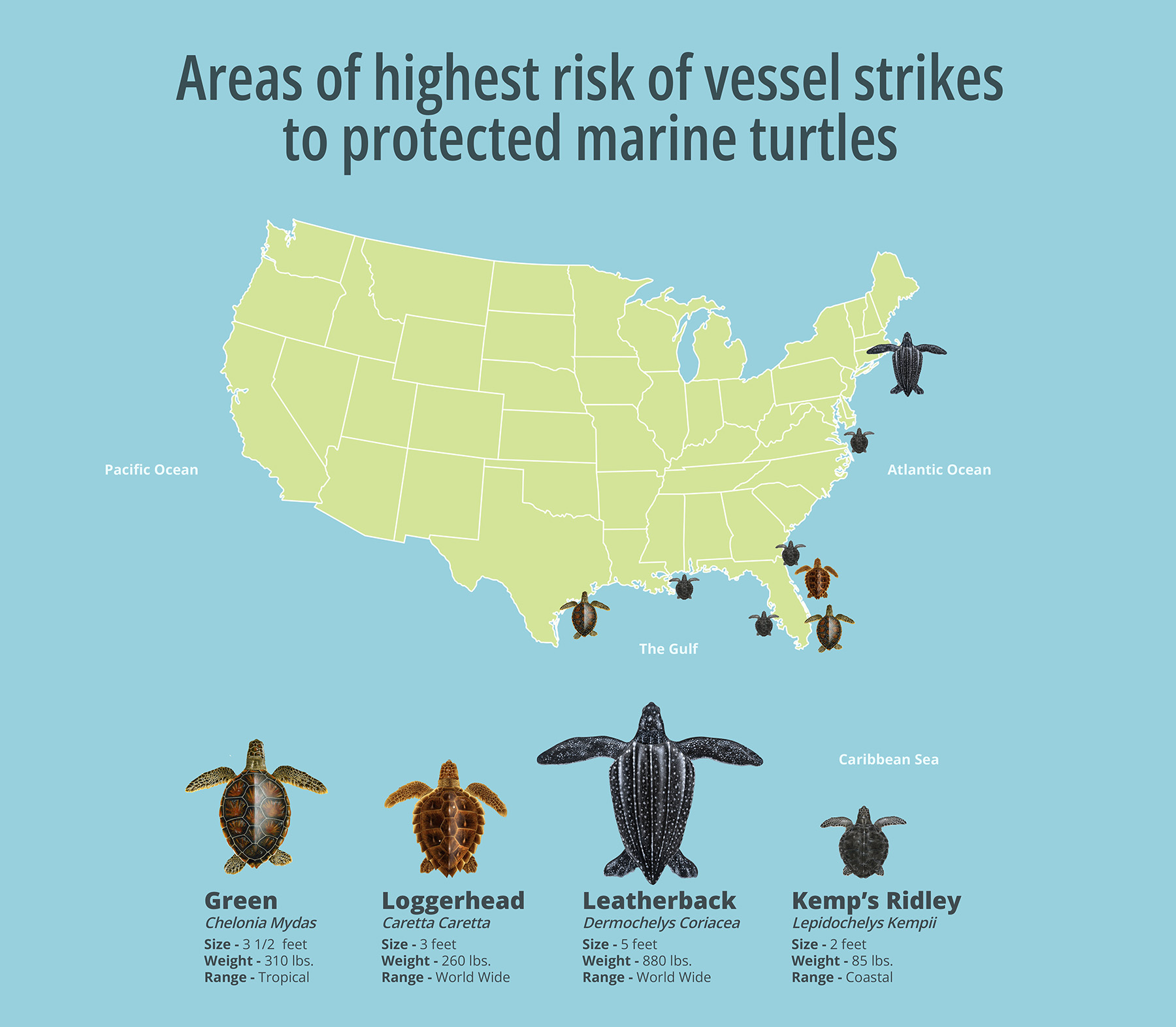 A Florida State University marine biologist is enhancing conservation efforts by identifying the areas on the U.S. Atlantic and Gulf coasts that expose protected marine turtles to the highest risk of being struck by vessels.