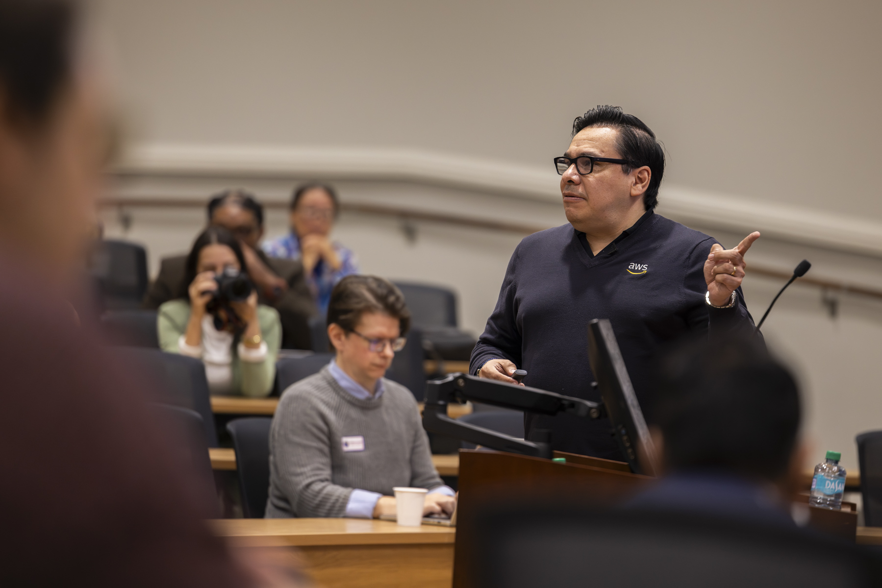 The breakfast keynote, "AI and the Future of Intelligence," was a fireside-style conversation on the evolution of generative AI. Sergio Ortega, the AI business development and sales lead at Amazon Web Services, offered pros and cons of the technology. He noted that its real-world use can improve efficiency and equity, but that data quality, bias and guardrails are critical for public-sector AI.
