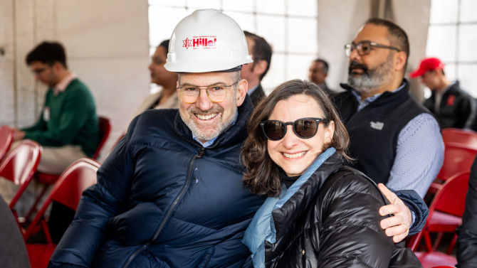 Dr. Steven Grinspoon '83 and Winifred "Winnie" Grinspoon '83 attend the groundbreaking of Harkavy Hall, which will house the Steven K. and Winifred A. Grinspoon Hillel Center for Jewish Community at Cornell.