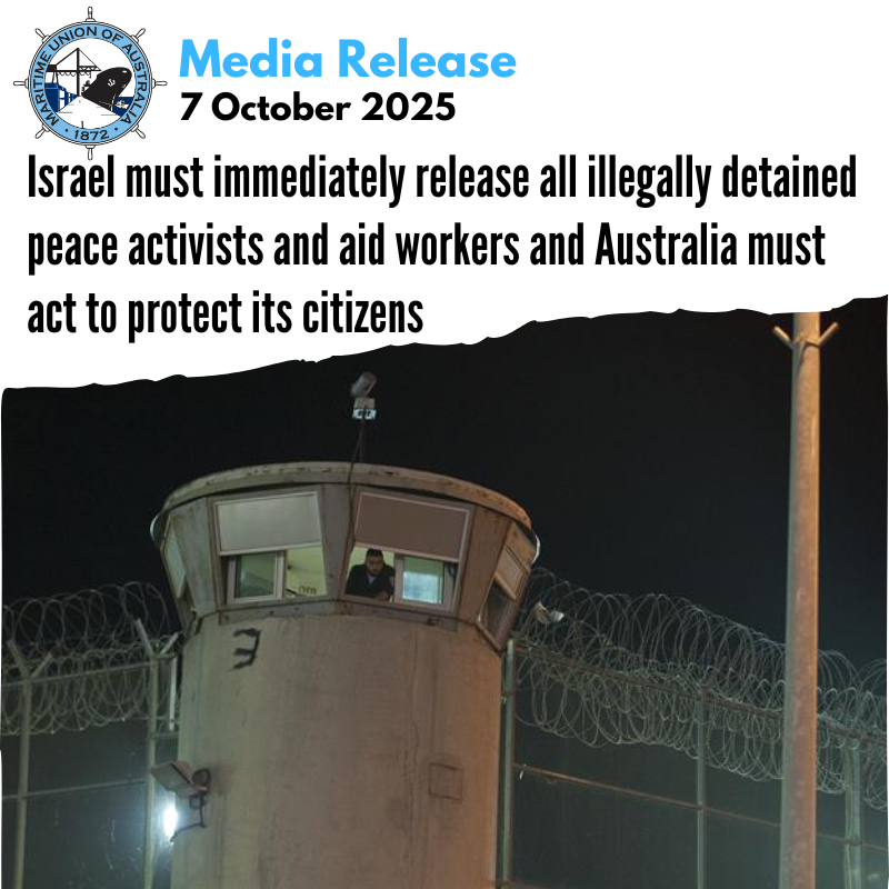 With reports emerging of deliberate and systemic mistreatment of peace activists by the Israeli military and security personnel, the Maritime Union of Australia (MUA) and the International Transport Workers' Federation (ITF) reiterate the demand for the immediate and unconditional release of MUA seafarer Hamish Paterson and all other crew members and activists detained by Israeli forces during their peaceful humanitarian mission aboard the Global Sumud Flotilla.