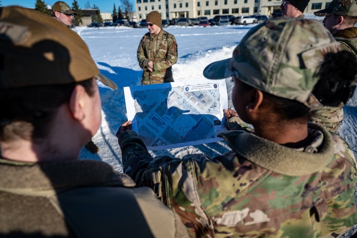 "Our training was Mission Ready Airmen," said U.S. Air Force Staff Sgt. Taylor Davis, 673rd SFS counter-small unmanned aerial system noncommissioned officer in charge. "It brought together a couple of topics from security forces, like use-of-force, combatives, land navigation, communications with land mobile radios and also some c-sUAS awareness and active shooter training."