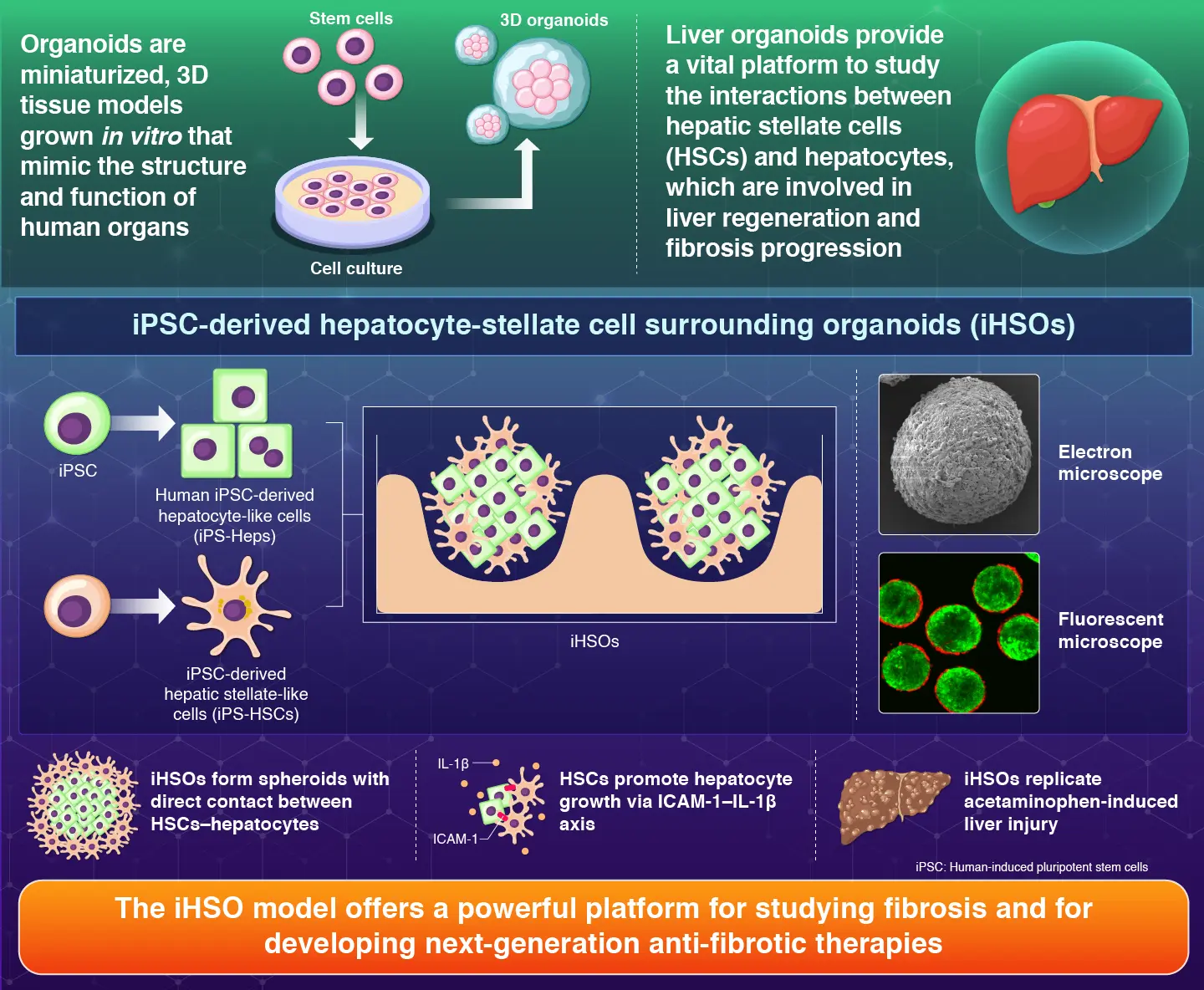 Chronic liver disease affects more than four million adults in the United States, and cases are rising in Japan due to factors such as alcohol consumption and metabolic disorders. By providing a realistic, human-based system for studying fibrosis, iHSOs could help scientists understand how scarring begins and identify drugs that could prevent or reverse it.