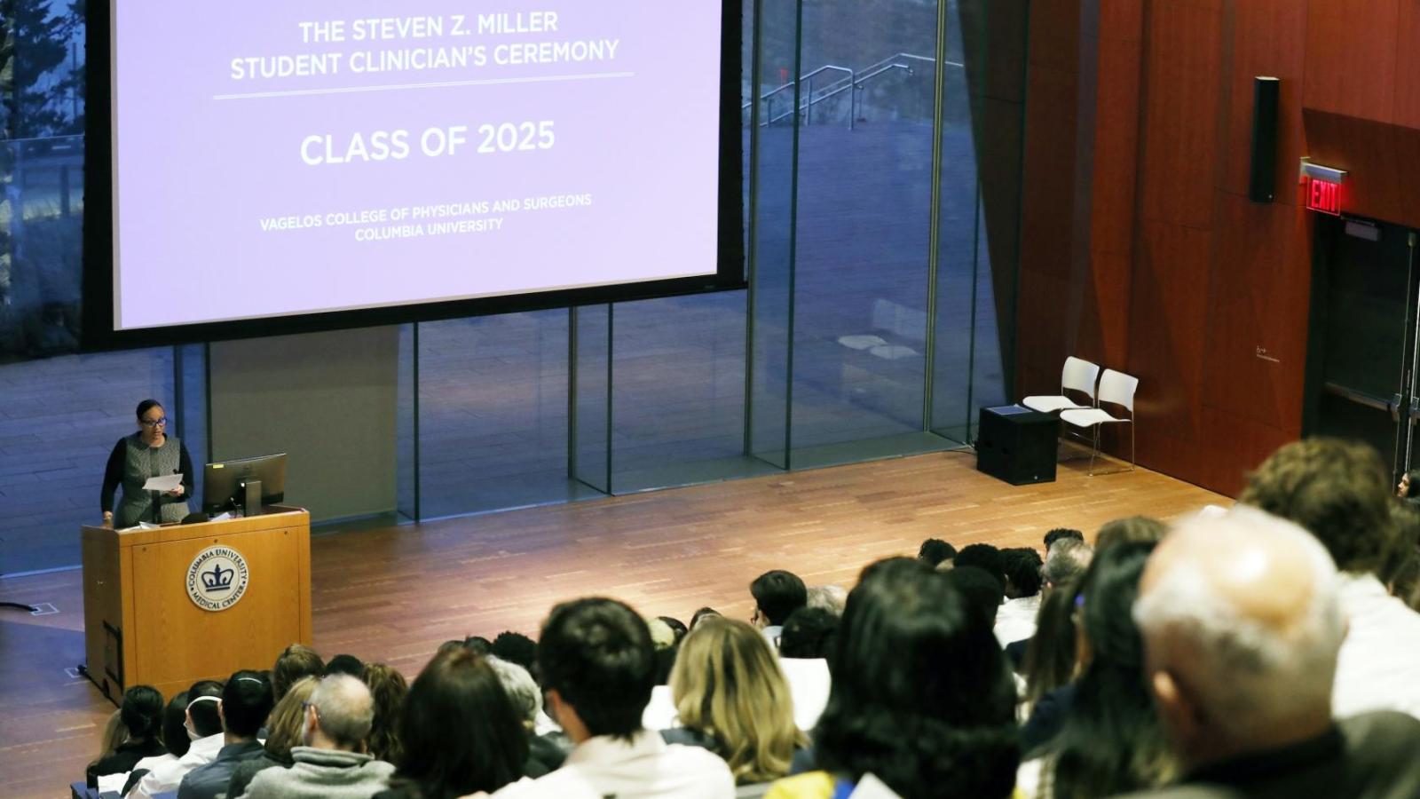 In the middle of their second year, medical students in the Class of 2025 marked their transition from classroom-based instruction to clinical education with the Steven Z. Miller Student Clinician's Ceremony.