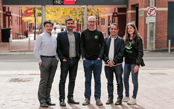 The Swinburne and Passel team, L – R: Dr Pei-Wei Tsai, Dr Hadi Ghaderi, Passel co-founder Marshall Hughes, Passel co-founder Julian Kelabora, Passel community engagement manager, Rebecca Campbell.