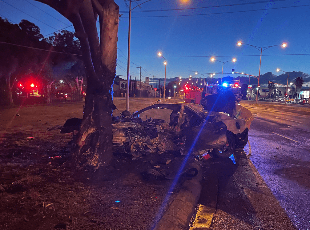 Just as the car was passing Footscray General Cemetery it's believed the driver has lost control, hitting a give way sign before crashing into a tree.