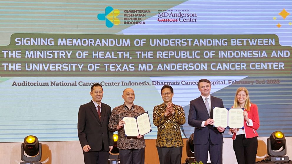 The University of Texas MD Anderson Cancer Center today announced the expansion of its global oncology efforts through a new agreement with the Ministry of Health of the Republic of Indonesia. This relationship builds on MD Anderson's efforts to share best practices in cancer education, prevention, research and treatment to reduce the burden of cancer worldwide.