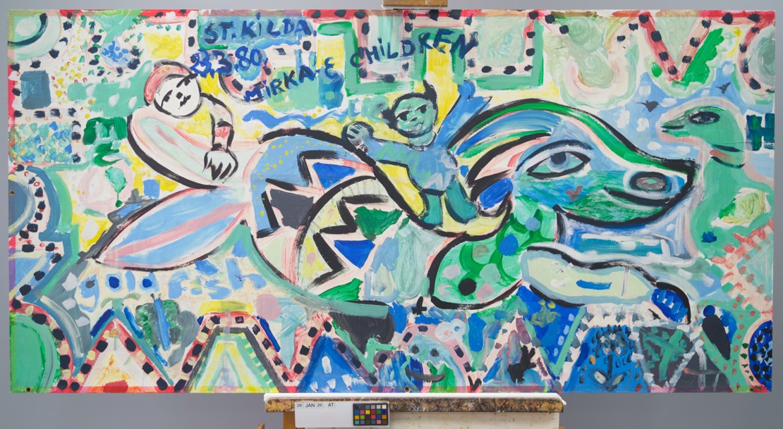 More broadly, the full story surrounding the mural's creation is incomplete. Available documentation indicates that the mural was produced as part of the St Kilda Festival in the 1980s, with Mirka Mora working with children to create the mural.