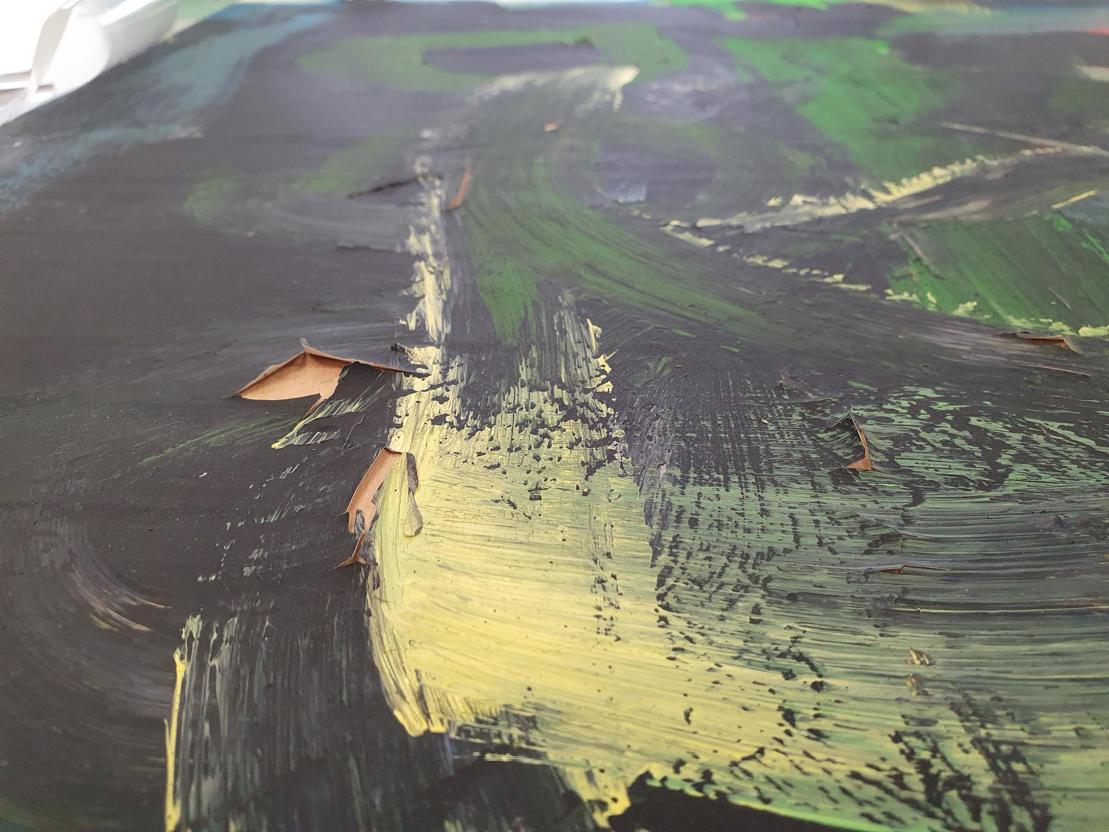The verso paintings suggest that the boards used for the mural may have been recycled, potentially supplied either by Council from another project or by one of the local participants involved in the St Kilda Festival project