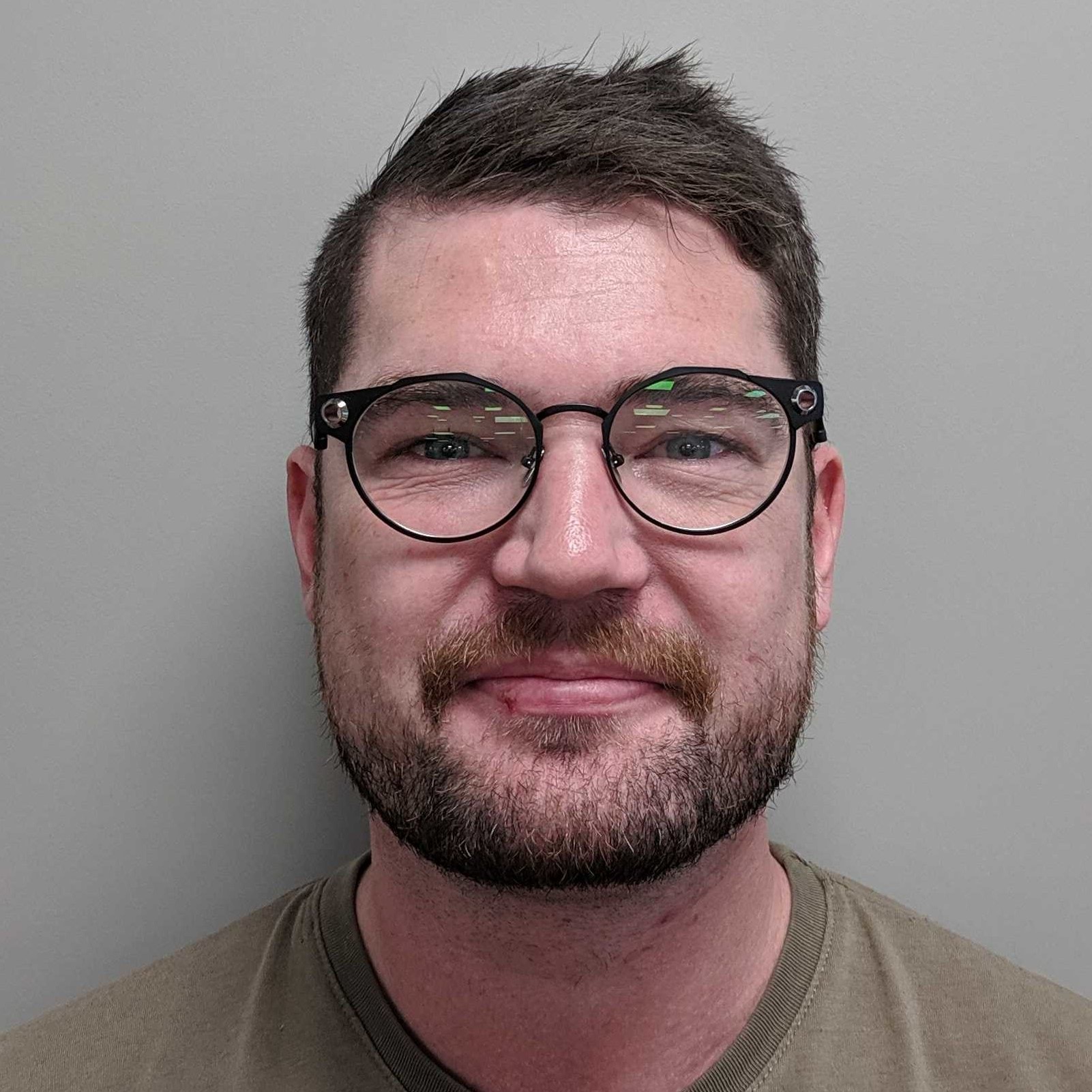 He is described as having brown short spikey hair, unshaven, medium build and wears round glasses.