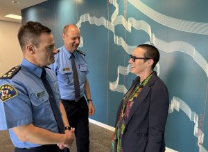 Tasmania Police Commissioner Donna Adams, Deputy Commissioner Jonathan Higgins, Northern District Commander Marco Ghedini, and St Helens Police Inspector Luke Manhood today inspected the new $7.5m St Helens Police Station at Annie Street.