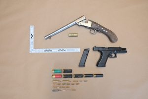 A .22 calibre pistol and a loaded, sawn-off single barrel shotgun were seized by police during the recent search of a Launceston property.