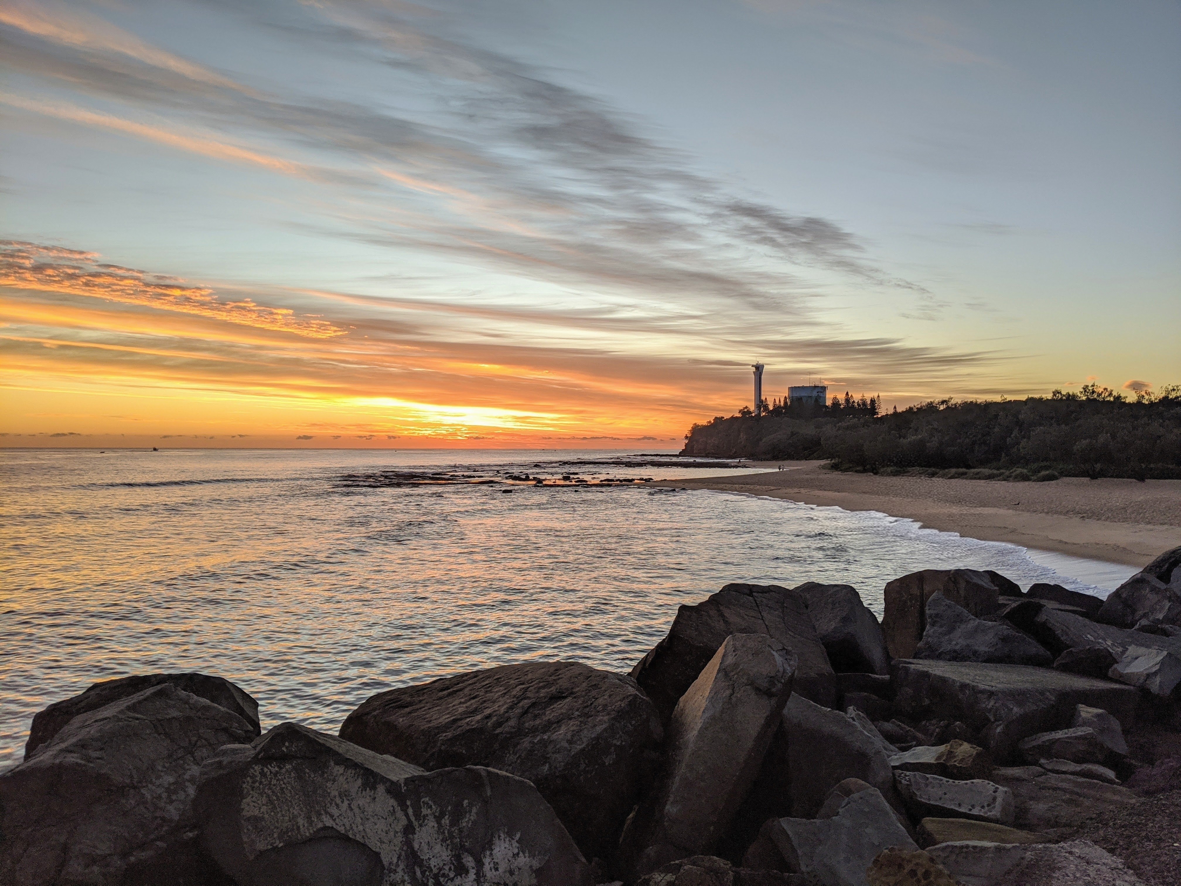 Located near the mouth of the Mooloolah River, Point Cartwright is renowned for its scenic beauty and landmark lighthouse. The current reinforced concrete pentagonal tower, measuring 32.4 metres in height, was opened in 1979, replacing earlier lighthouses that had been guiding ships into Moreton Bay since 1896.