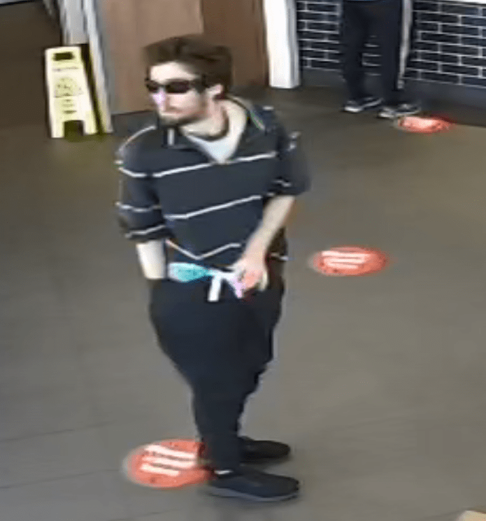 He is perceived to be Caucasian, aged in his 40s, about 183cm tall and was wearing dark tracksuit pants and a striped top.
