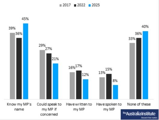 "With local members stretched thin, it is no surprise that fewer and fewer Australians have ever spoken to their local member or would feel comfortable doing so.