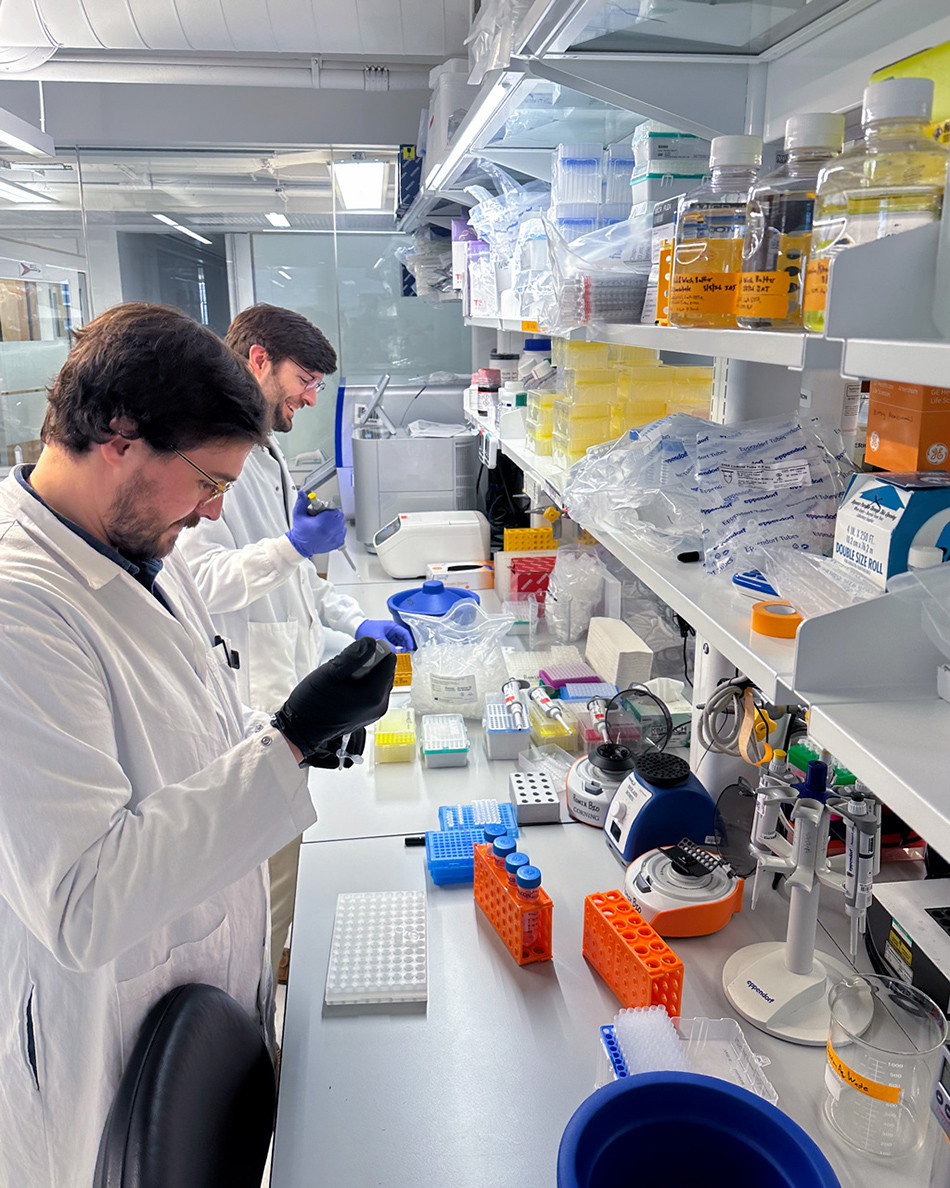 Romix's director of next generation sequencing Julius Judd, foreground, and co-founder and chief technology officer David McKellar work in the lab where they build molecular tools that expand what's possible with non-invasive liquid biopsies.