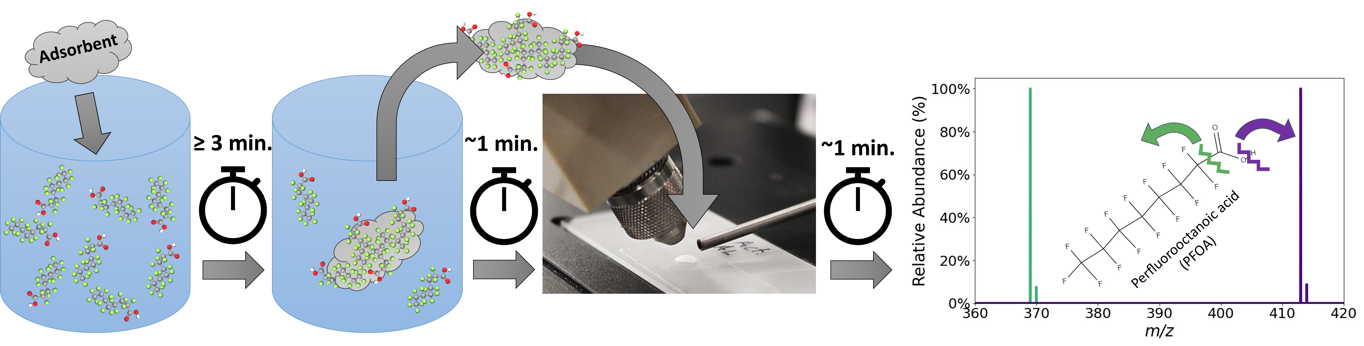 The pair stumbled onto the approach while experimenting with a mass spectrometer and a technique called desorption electrospray ionization, or DESI. The process uses electrically charged droplets sprayed at the surface of an adsorbent that ionizes only the target chemical, not the adsorbent itself.