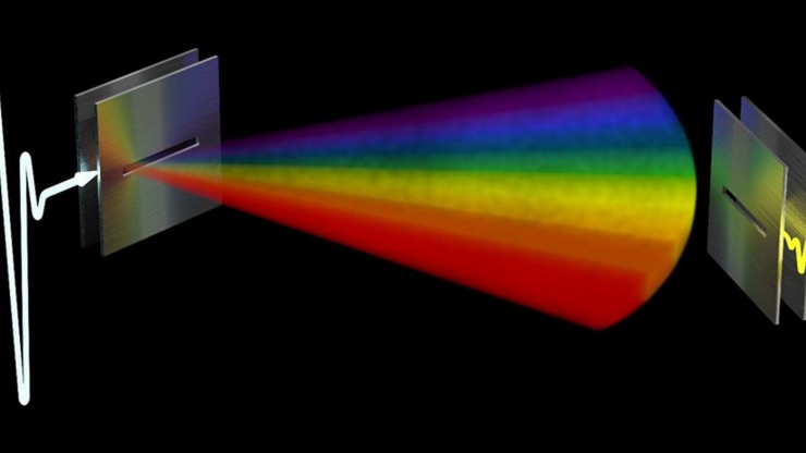 "We input a wide range of terahertz frequencies into this waveguide in a single pulse, and each one leaks out simultaneously at a different angle," said Yasaman Ghasempour, a graduate student at Rice and co-author on the study. "You can think of it like a rainbow leaking out, with each color represents a unique spectral signature corresponding to an angle."