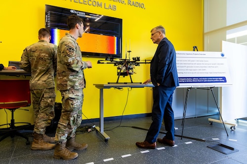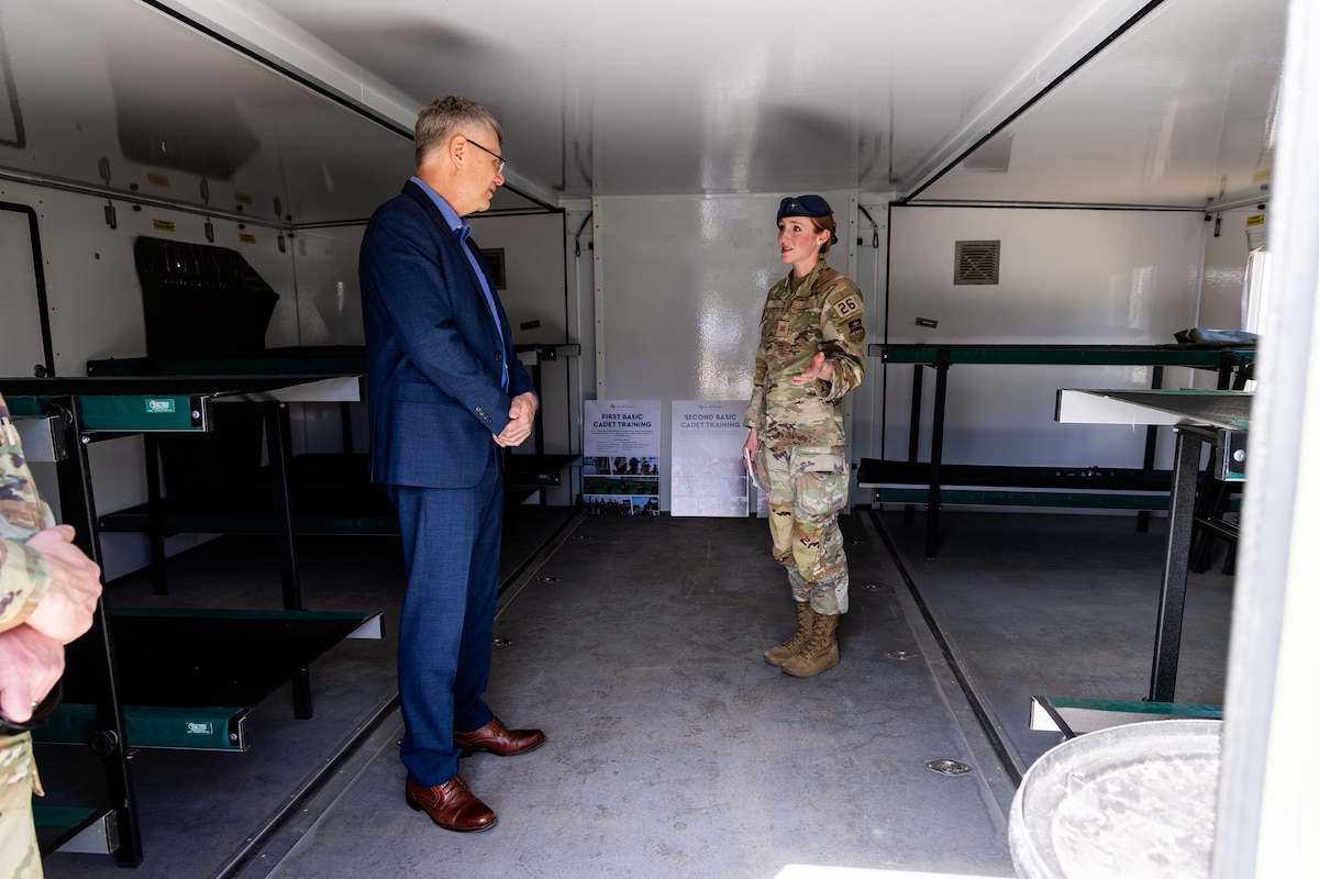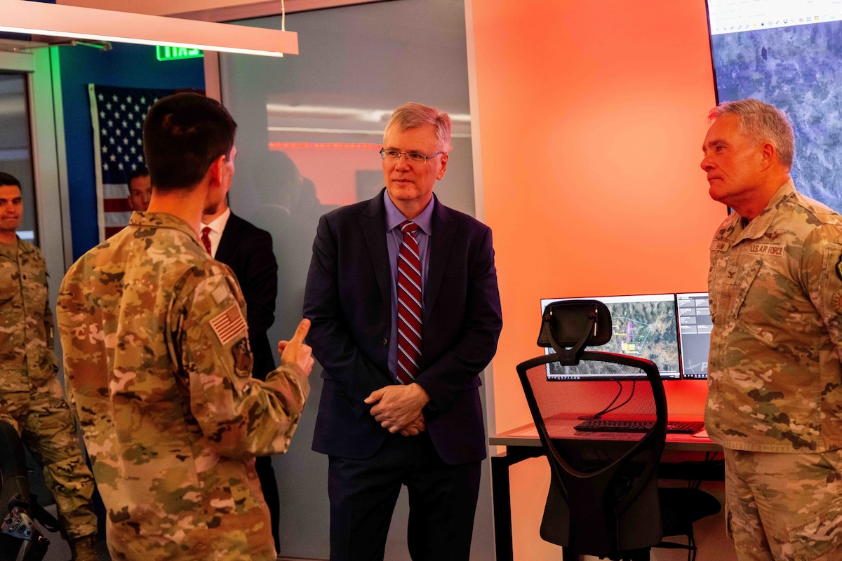 The senior leader also received an immersion into military training at the Academy at the Jacks Valley training area. While visiting Jacks Valley, Cadets highlighted military training programs designed to build leadership and warfighter readiness across USAFA's entire 47-month integrated training program. This included a drone demonstration, where cadets operated small unmanned aerial vehicles to support the warfighter, and a live demonstration of the Assault Course, a formative experience for many cadets. Meink was also briefed on the Academy's spring culminating exercise, a capstone event that tests the entire, 4,000-member Cadet Wing in a simulated multi-domain, joint warfighting environment.