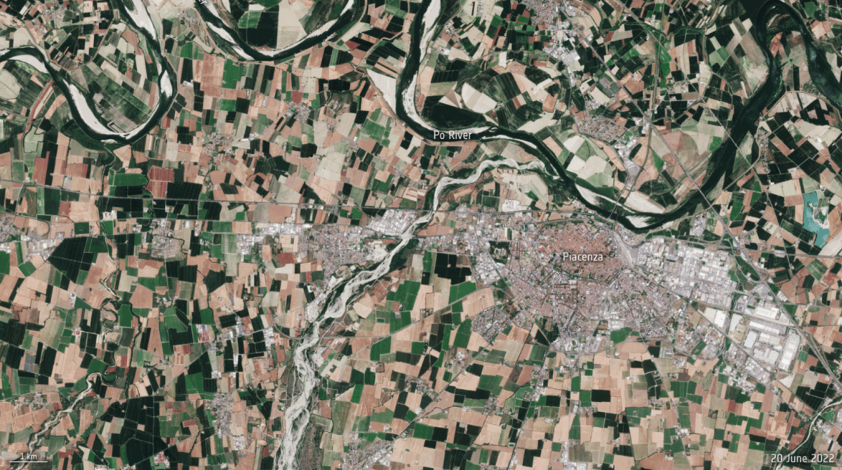 The Po River serves as the main outlet for northern Italy's water systems, fed by precipitation from the Alps and the Apennine Mountains, and its flow is crucial to monitor because it can affect regional agriculture, energy production, economic stability and public health.
