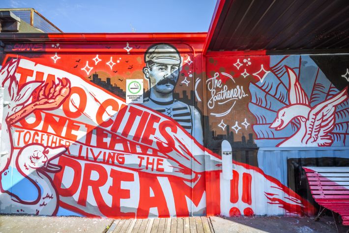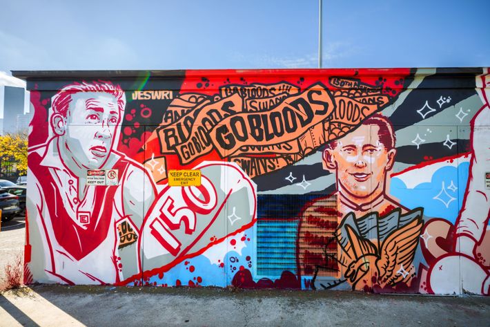 Located between York Street and the Market's external food hall, the colourful mural pays tribute to Swans legends from the club's days in South Melbourne.