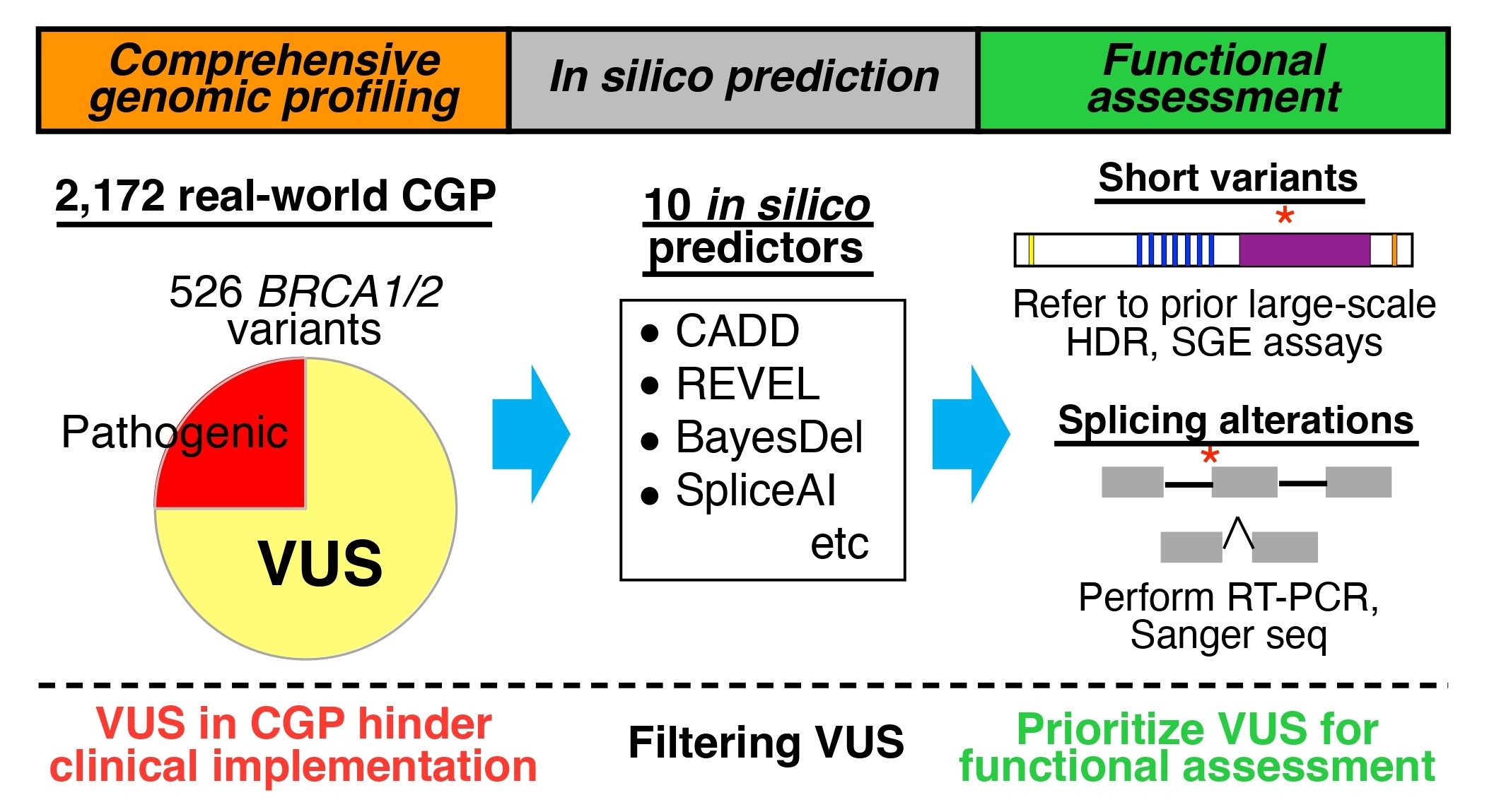 Hiroshima University researchers have developed a practical framework to identify candidate pathogenic variants hidden among the large number of variants of uncertain significance (VUS) detected in comprehensive genomic profiling (CGP) of cancers. This framework could improve the accuracy of precision oncology by more reliable prioritization of VUS.
